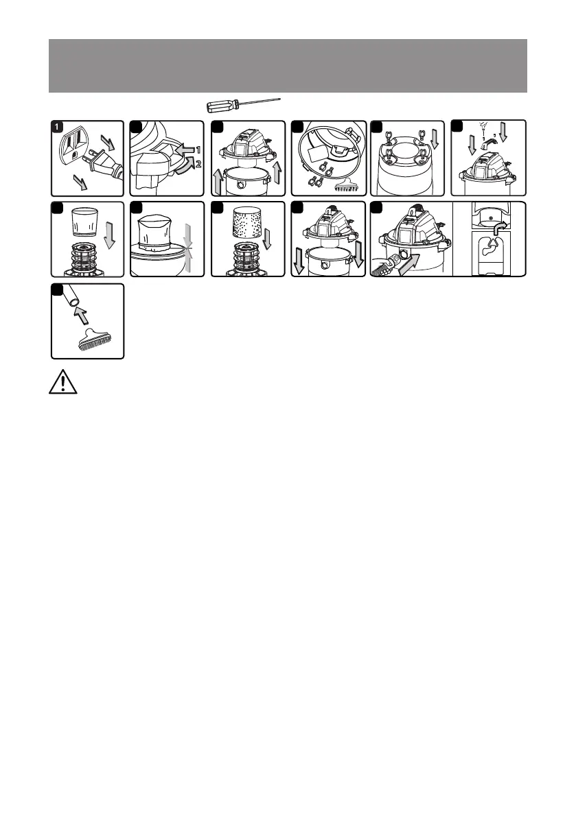 8. Pour l’aspiration de matériaux humides, retirez le ltre en tissu réutilisable, puis installez le