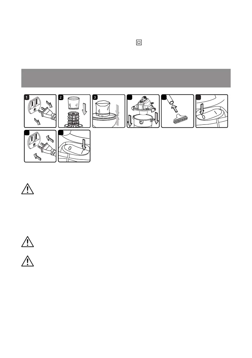 2. In order to prepare your vacuum for dry vacuuming, make sure the reusable cloth lter