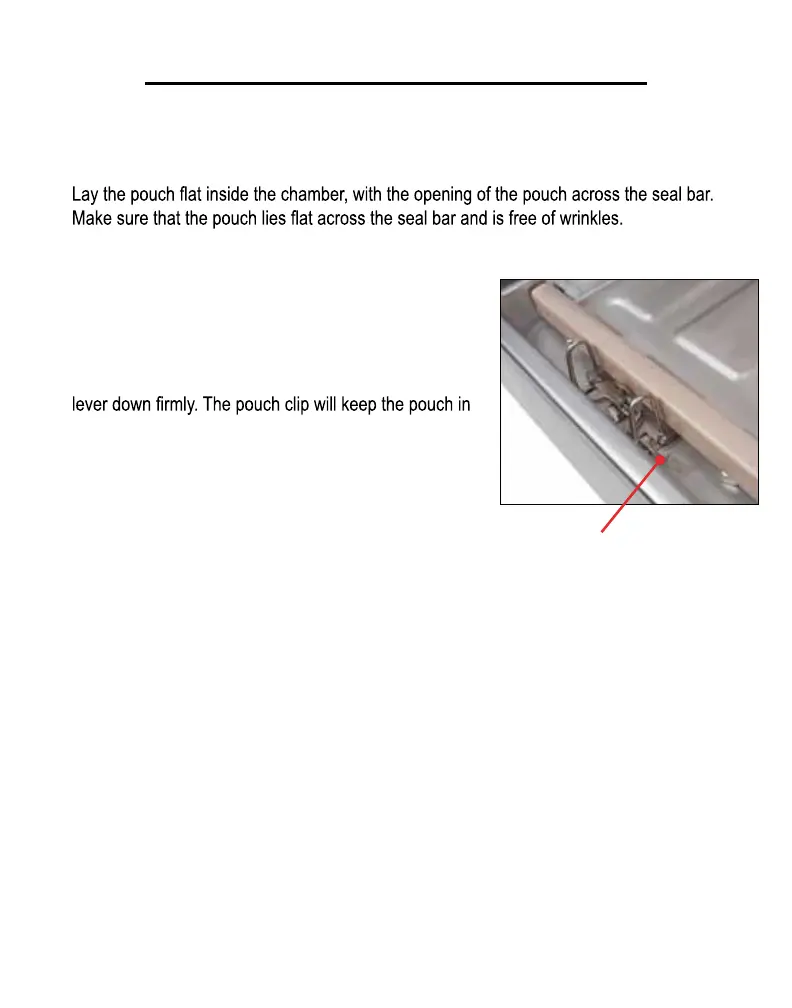 chamber. Keep pouches that contain liquids or wet product below the height of the seal bar.
