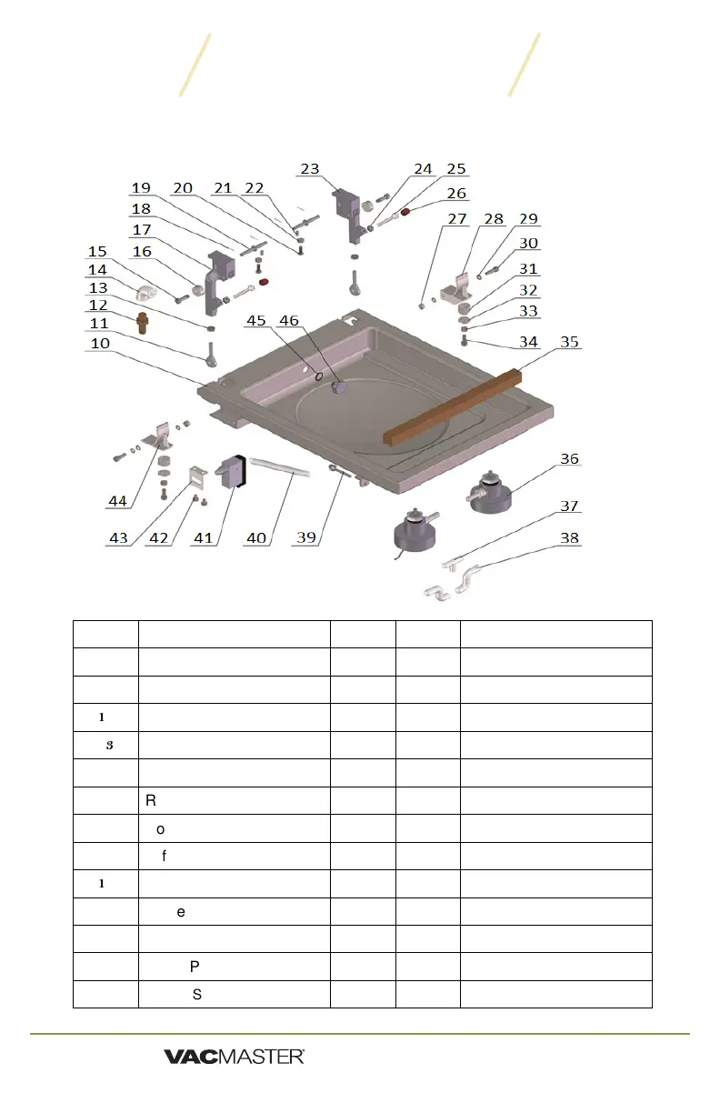 Vacmaster VP220 - Parts Information - Chamber; Chamber Assembly Components List