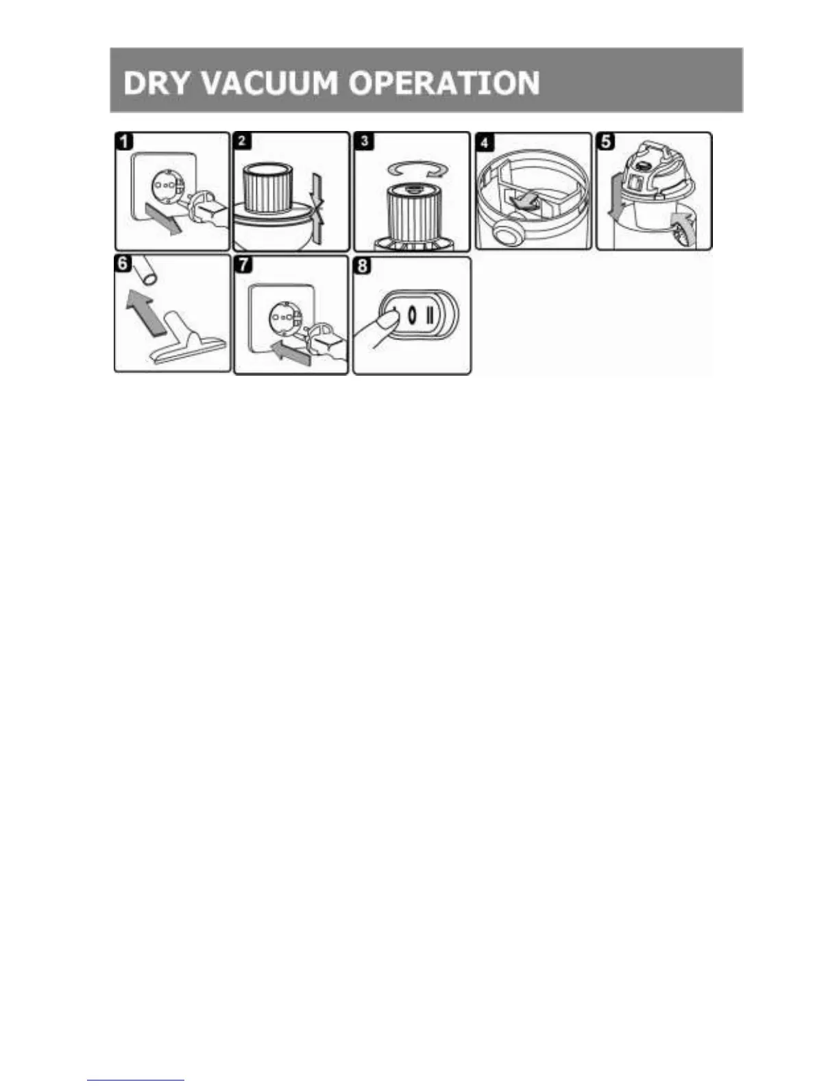 4.2. In order to prepare your vacuum for dry vacuuming, verify that the cartridge filter is