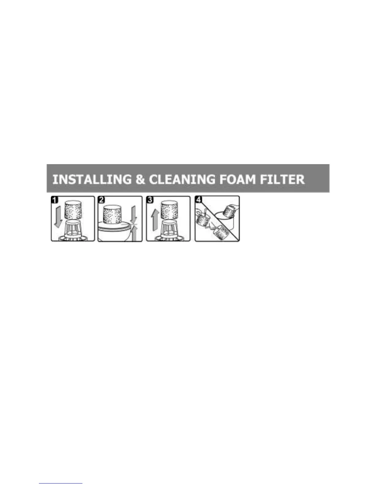 9.6. Use a mild soap and water solution to wash foam filter and rinse with clean