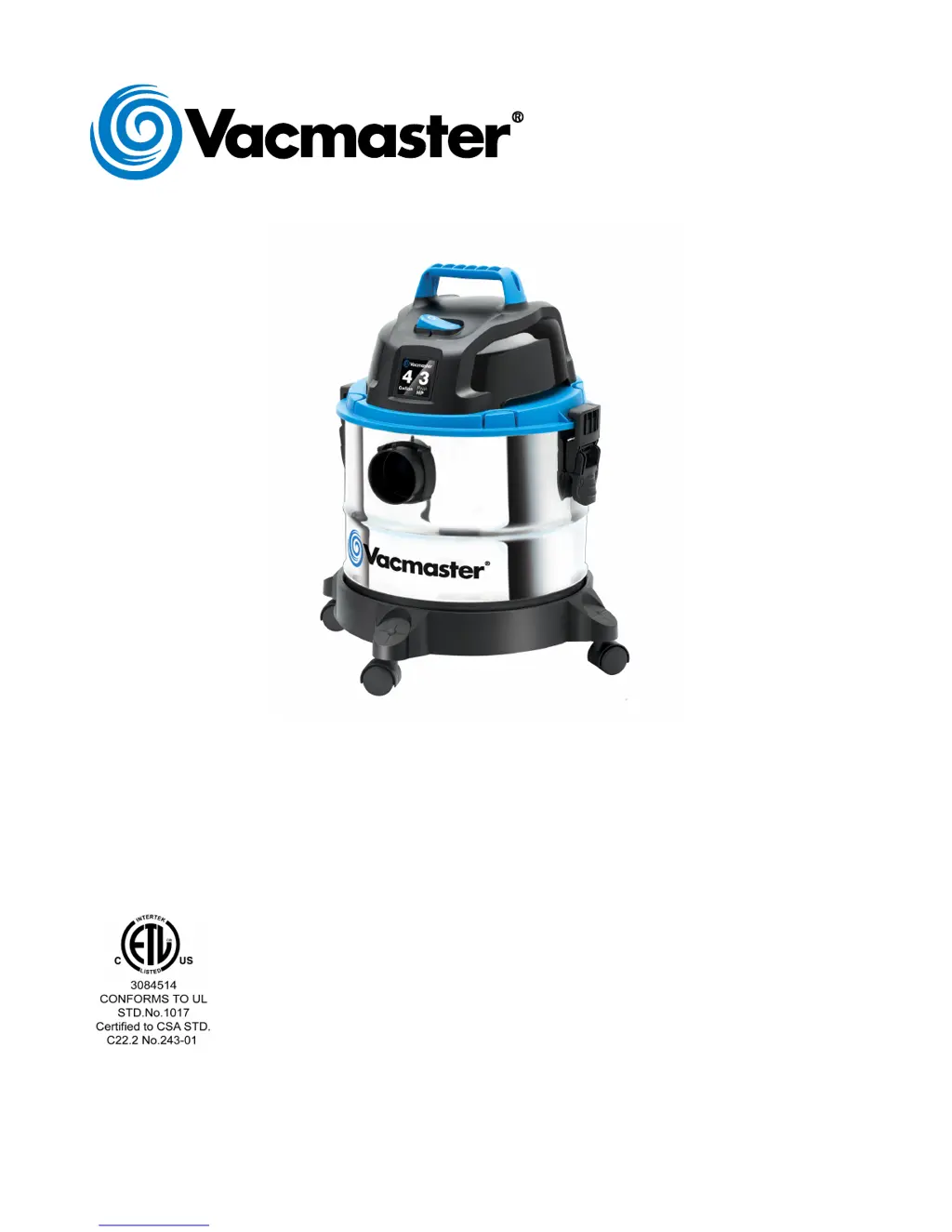 If your Vacmaster Vacuum Cleaner isn't operating, start by checking the power supply, including the cord, breakers, and fuses. Also, ensure the container is not full, as this can prevent operation. If the power cord is faulty, unplug it and have it repaired by a professional.