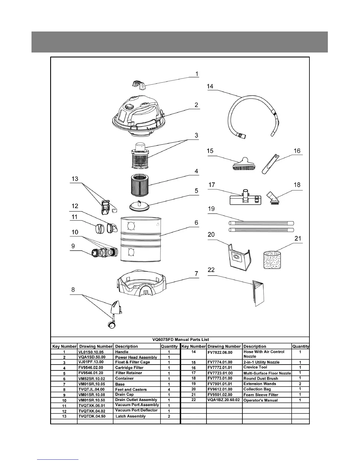 Vacmaster VQ607SFD - Exploded View and Parts List