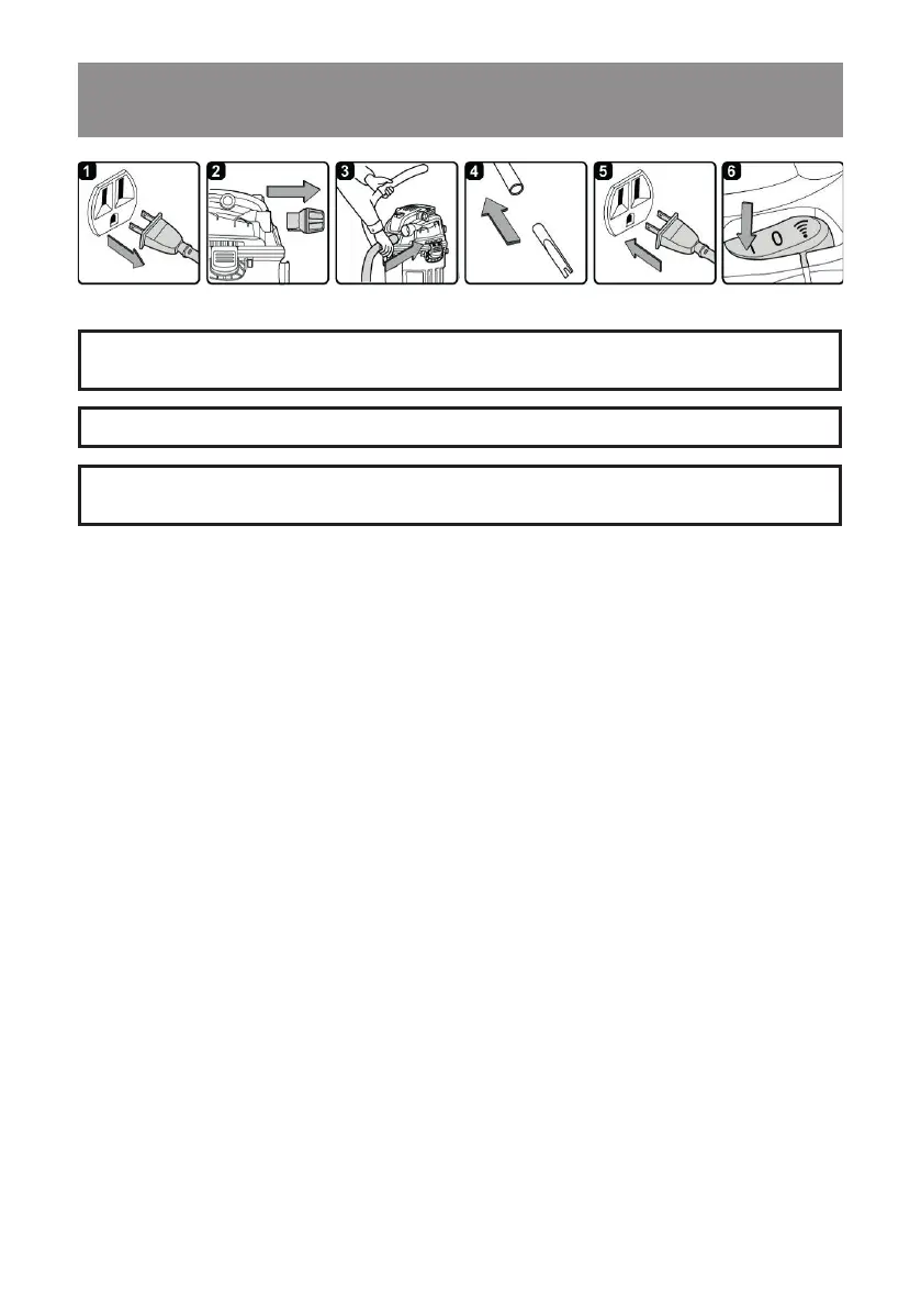 7. Before turning ON the vac, rmly hold loose end of the hose. Turn the motor on by ipping