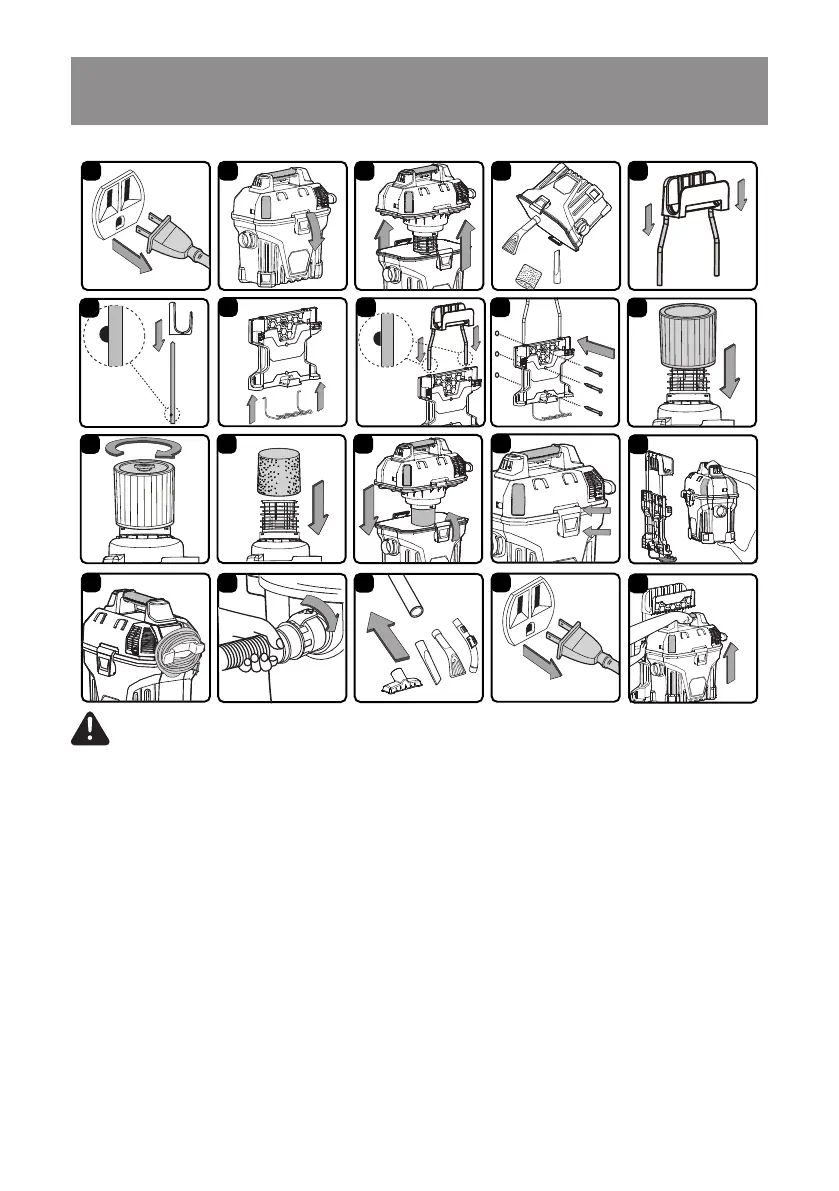 PLUG IS DISCONNECTED BEFORE ASSEMBLING THE WET/DRY VACUUM. TO REDUCE