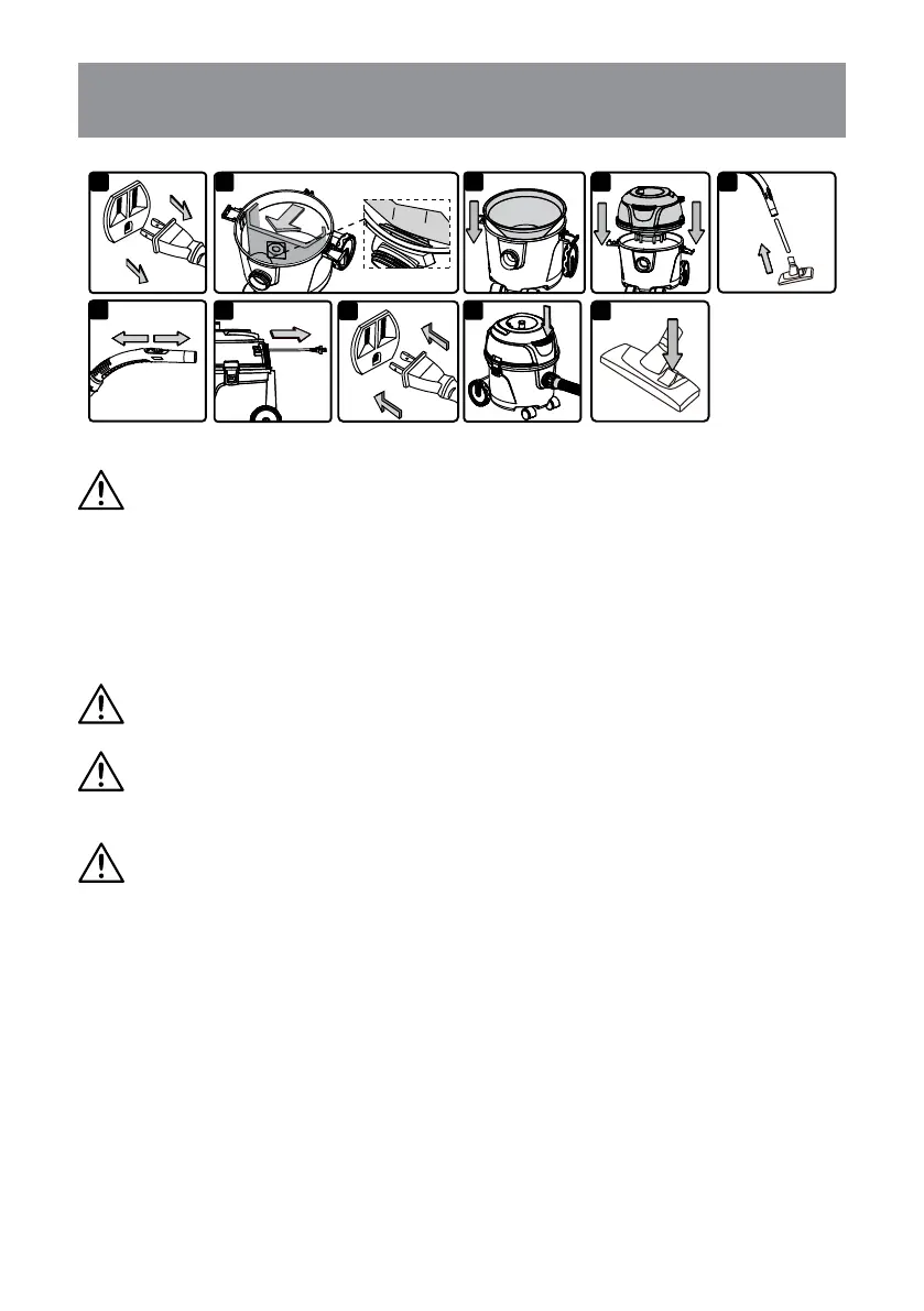 DO NOT VACUUM DRYWALL DUST, FIREPLACE SOOT, OR ASH WITH