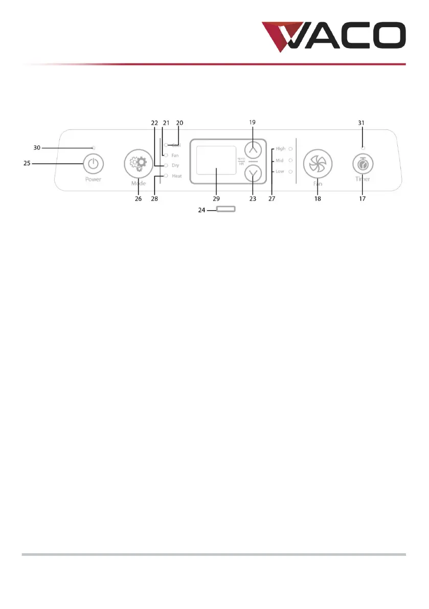 23. Taste Wert verringern DOWN: Zieltemperatur für die Kühlung / Heizung verringern:
