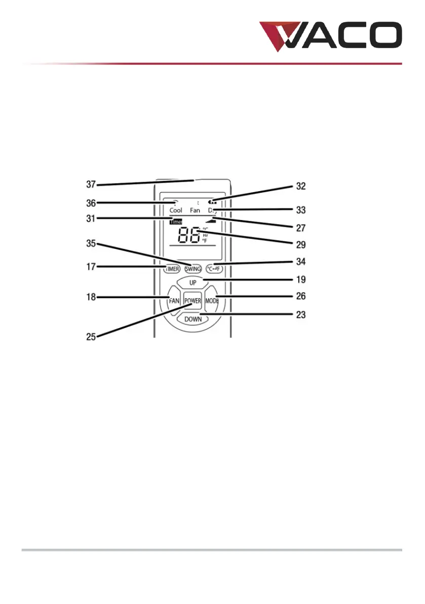 18. Przycisk wentylatora Fan: Ustawianie jednej z 3 prędkości wentylatora: High-Wysoka, Mid-