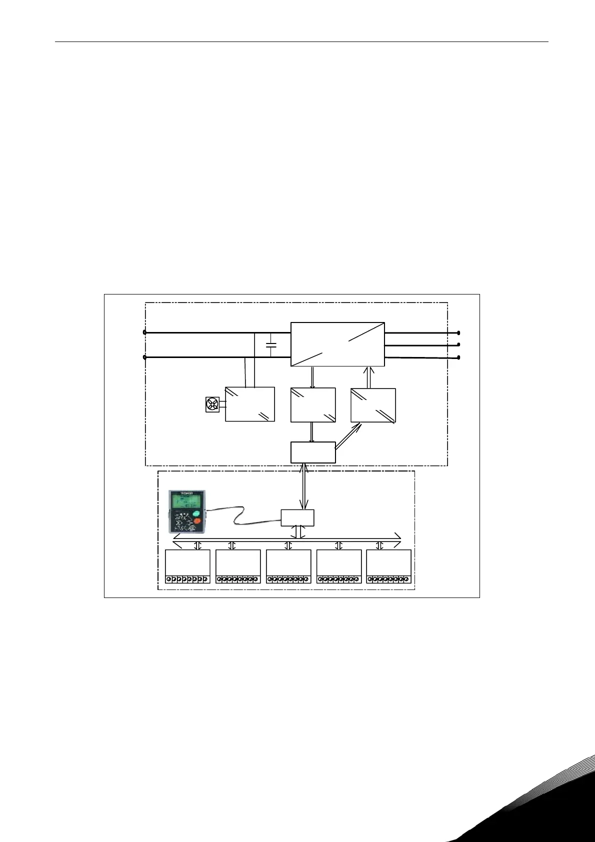 The figure below presents the block diagram of the Vacon NX inverter. The inverter mechanically