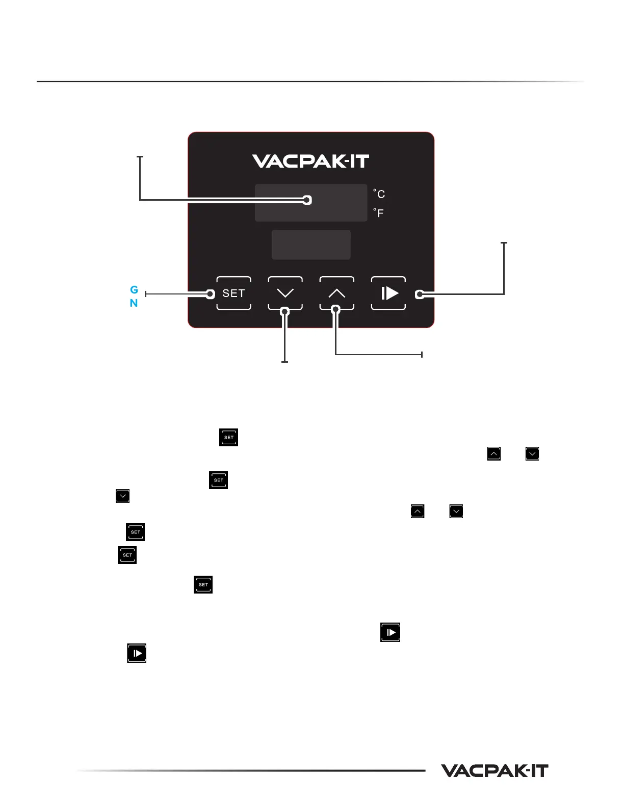 should cause the LEDs to flash, then set the desired temperature with the and