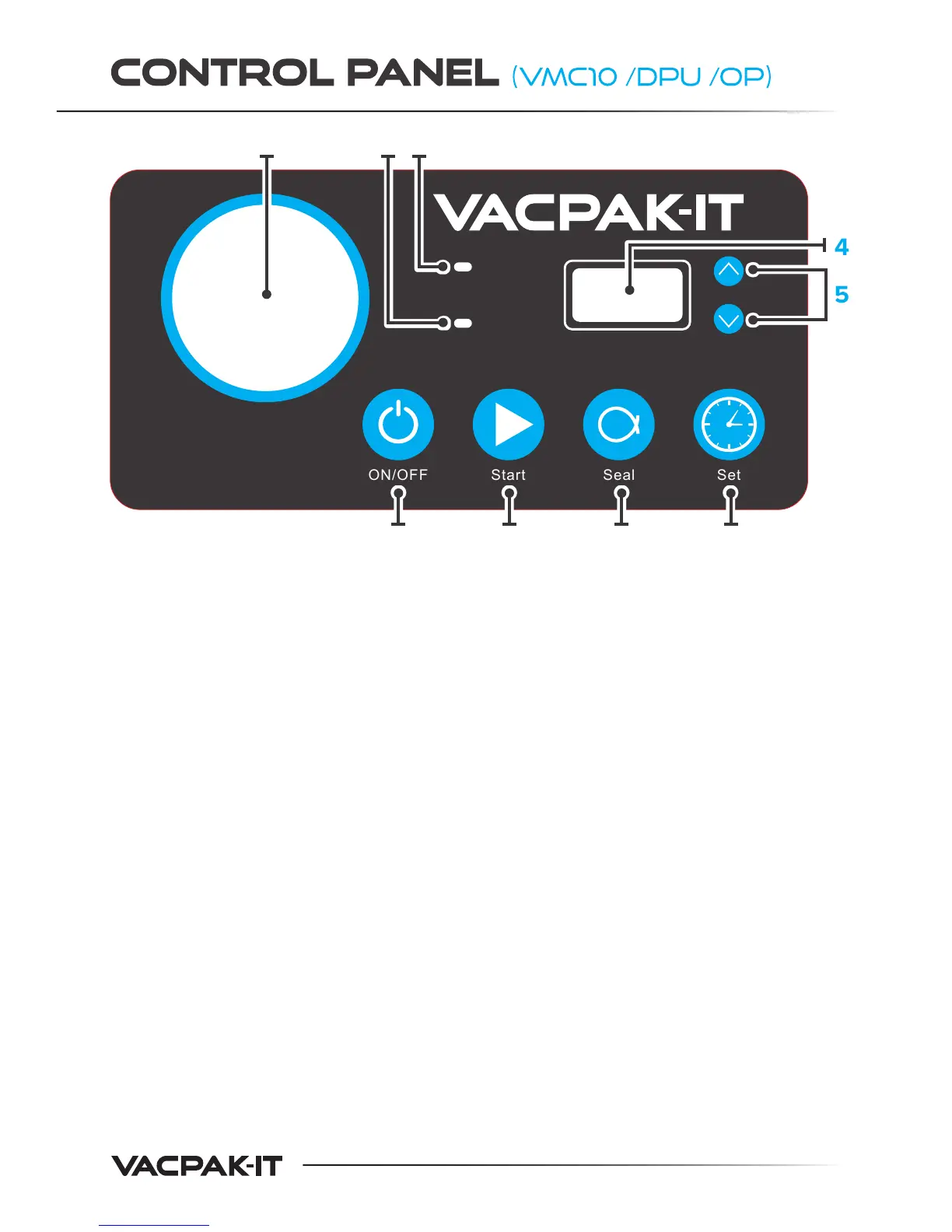3. “Vac Time” Light - Illuminates when adjusting vacuum time.