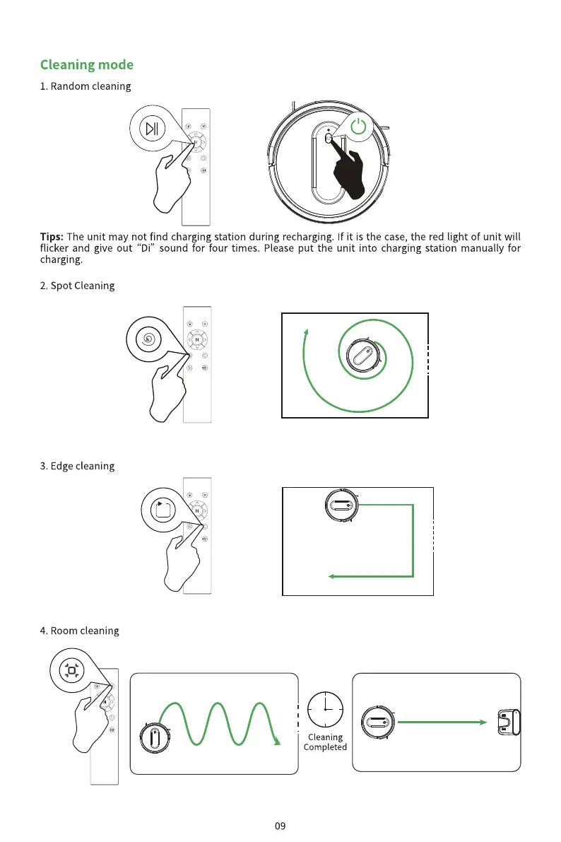 flicker and give out "Di" sound for four times. Please put the unit into charging station manually for