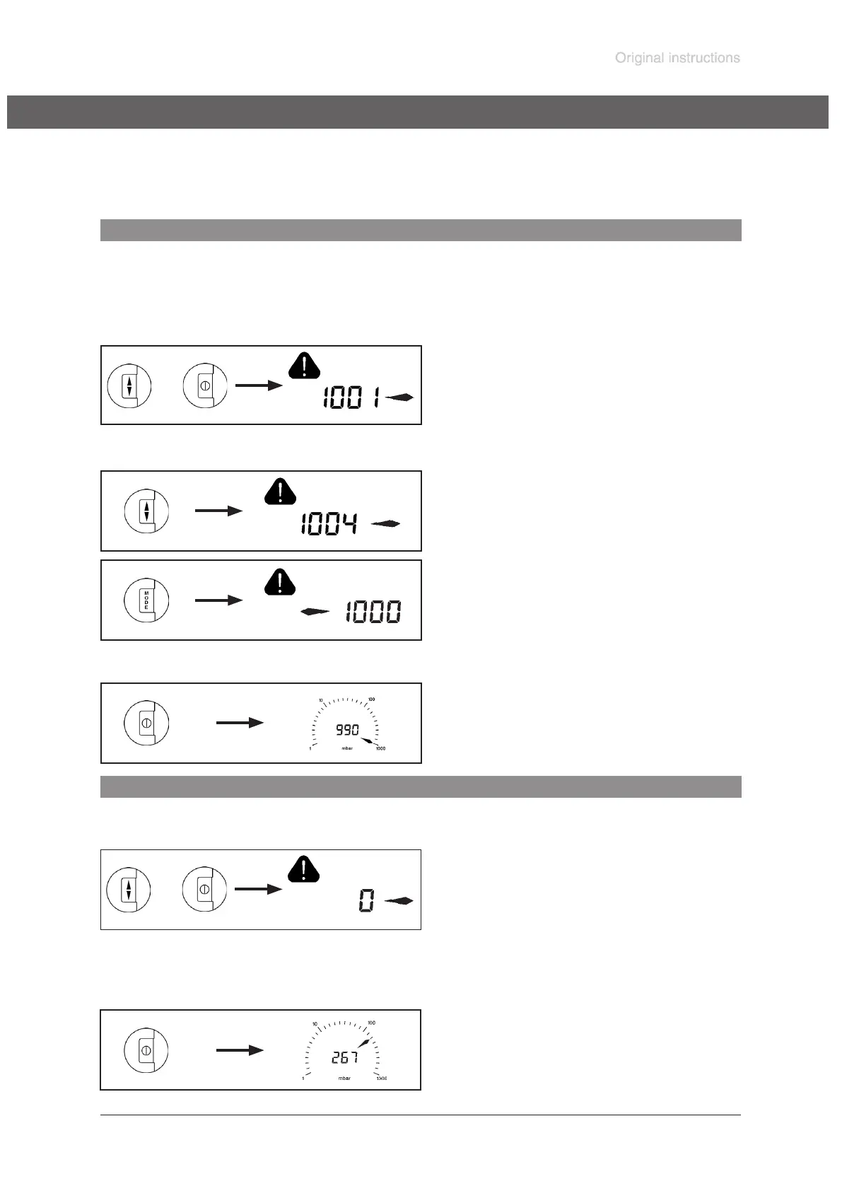 ☞ The vacuum gauge switches into the adjust-