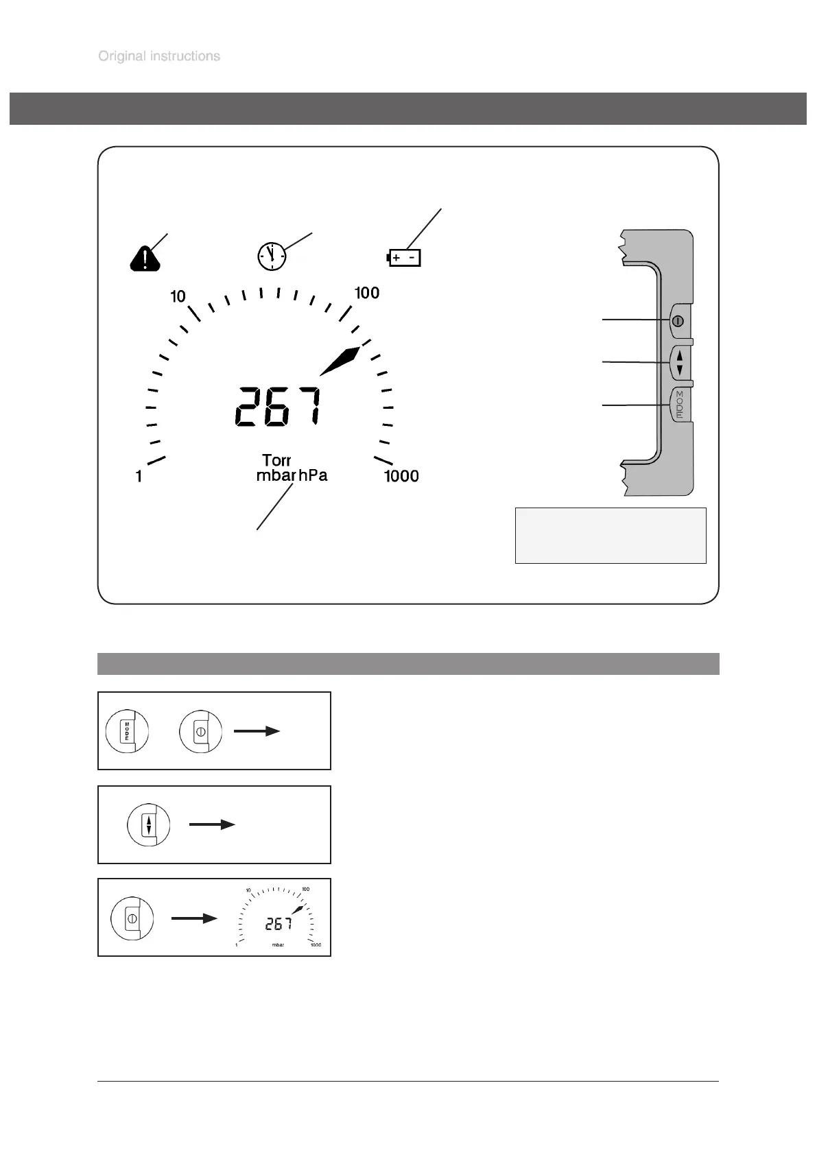 ☞ The pressure unit as of the last operation (Torr, mbar or