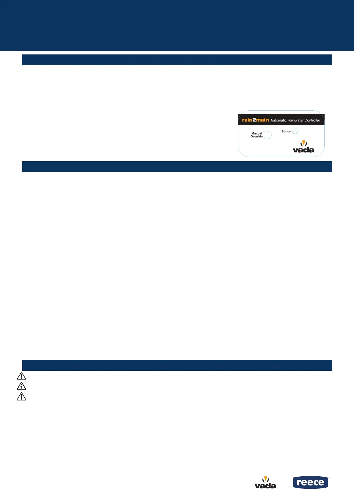 Rain2Main is electrically connected. Ensure that it is isolated from electrical supply during installation and any subsequent service work.