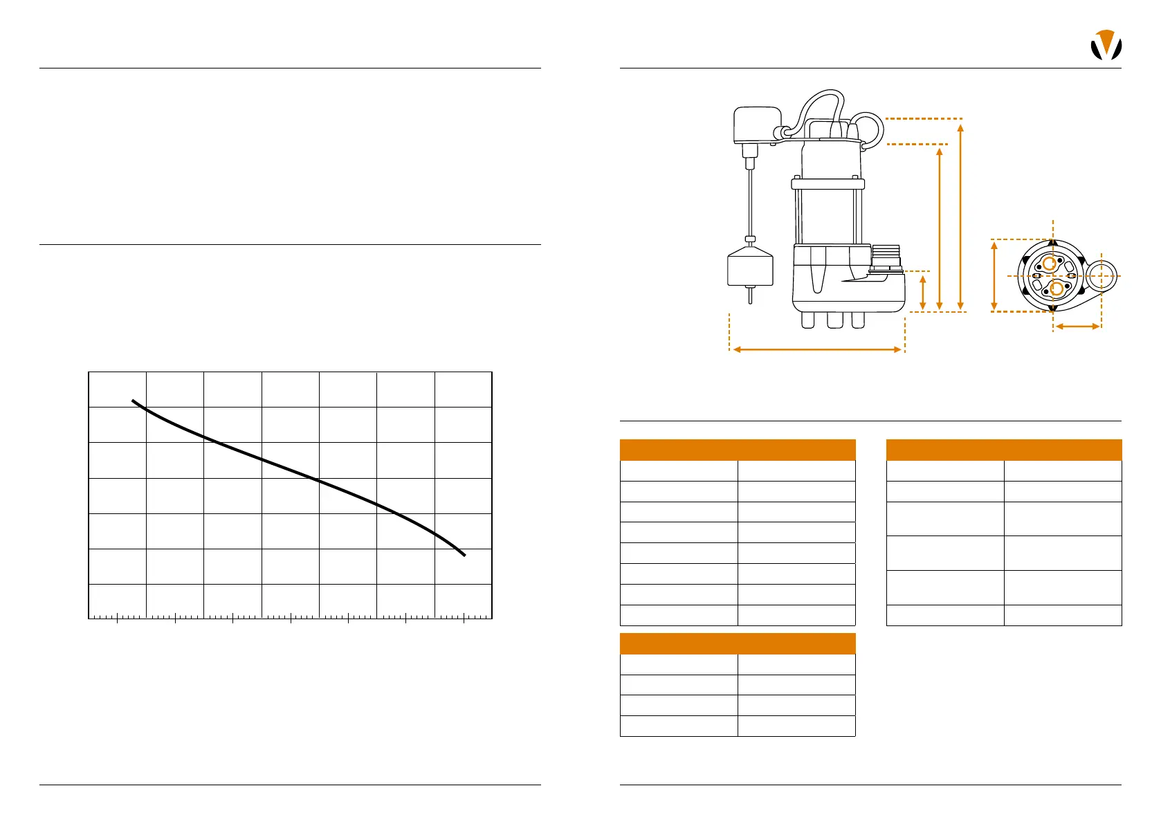 In the pump curve below, you can see that if the Vada Sump Pump with Vertical Float (V150-VF) has
