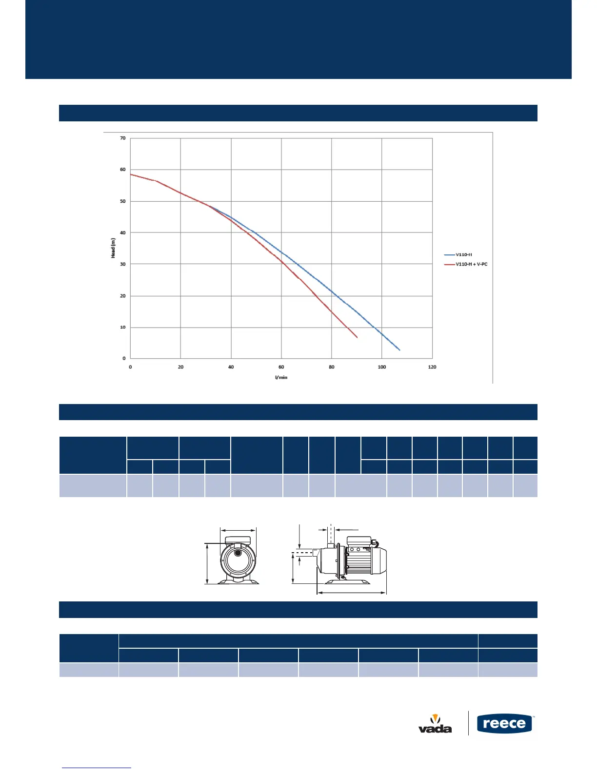 VADA V110-H - Pump Performance and Dimensions; Hydraulic Performance Chart; Pump Performance Data; Pump Dimensions and Weight