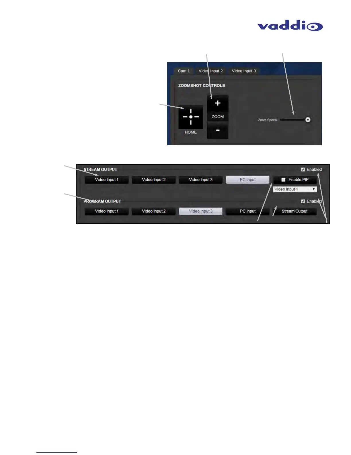 Stream Output selection: Use the Video Input 1, 2, 3 or PC Input to select source for the Streaming Outputs.