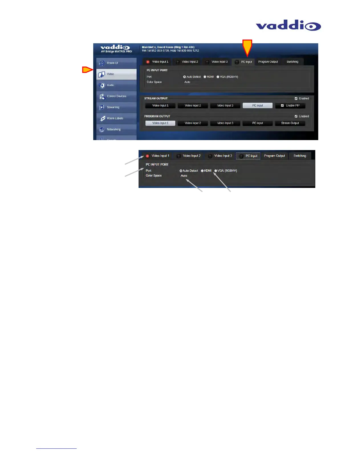 PC Input Port: Use this screen to configure the