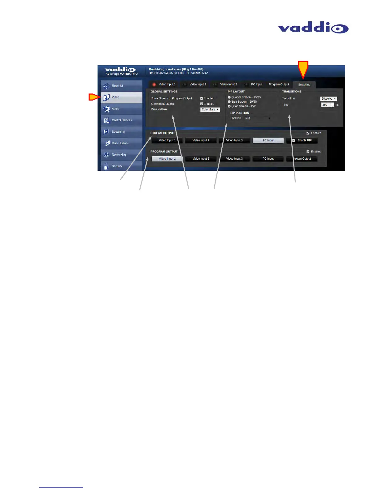 Global Settings: Check box to enable input labels to be superimposed over video content sources. The lettering