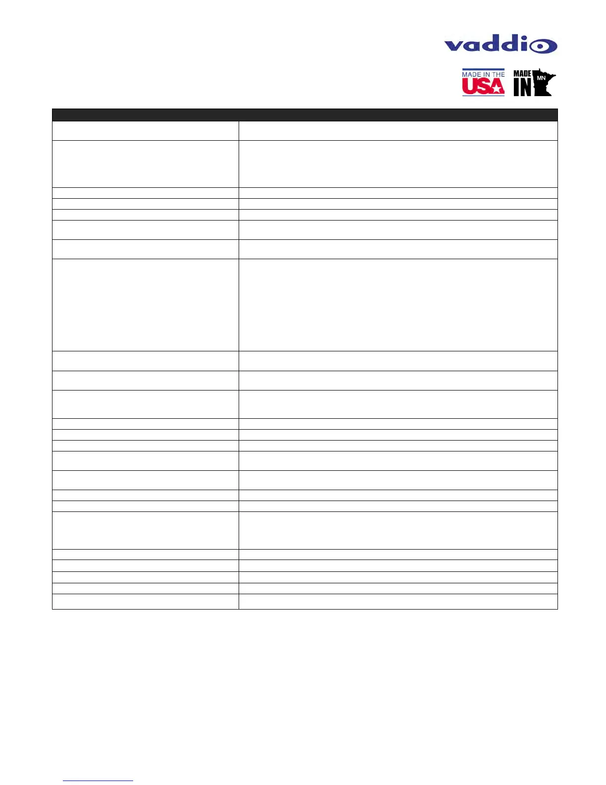 HDMI and Vaddio Display HSDS:: 1080p 60/59.94/50/30/25 Hz, 1080i 59.94/50 Hz,