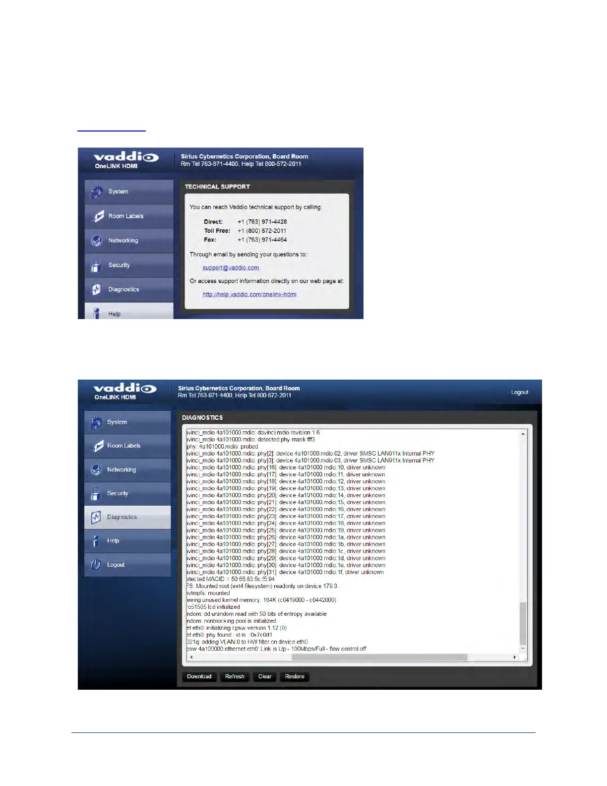 Contacting Vaddio Technical Support and Viewing Diagnostics