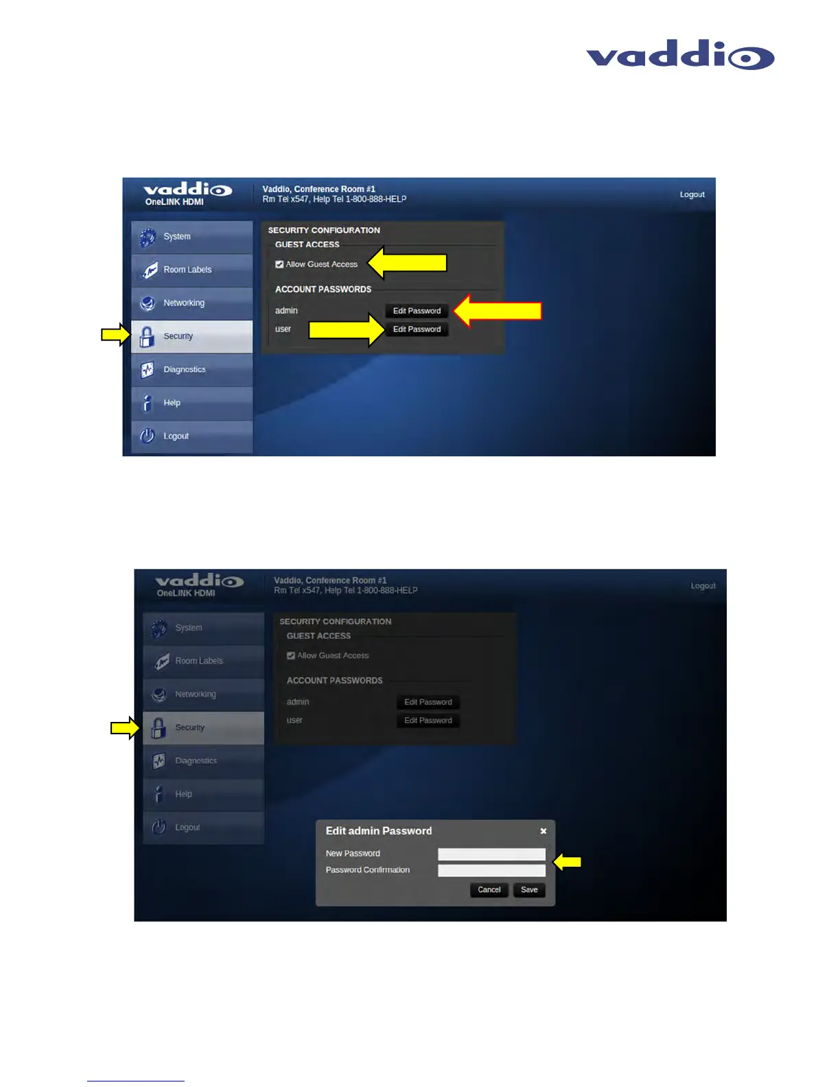 control with Vaddio PTZ cameras using the OneLINK Systems. The Guest Access function is also a future parameter that is