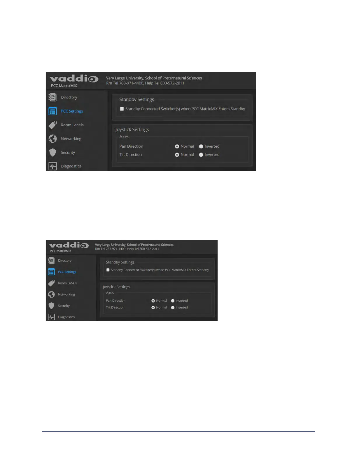 Select Normal or Inverted for joystick pan and tilt axes.