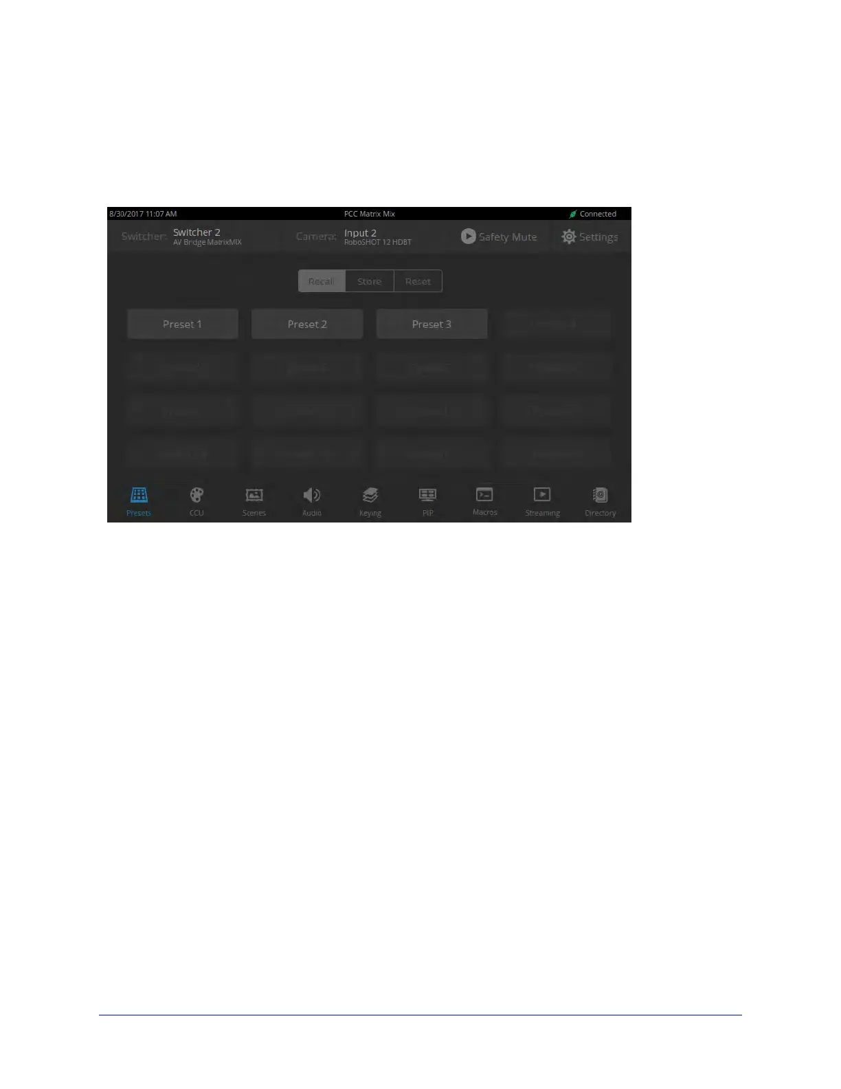 PRESETS SCREEN (TOUCH-PANEL)