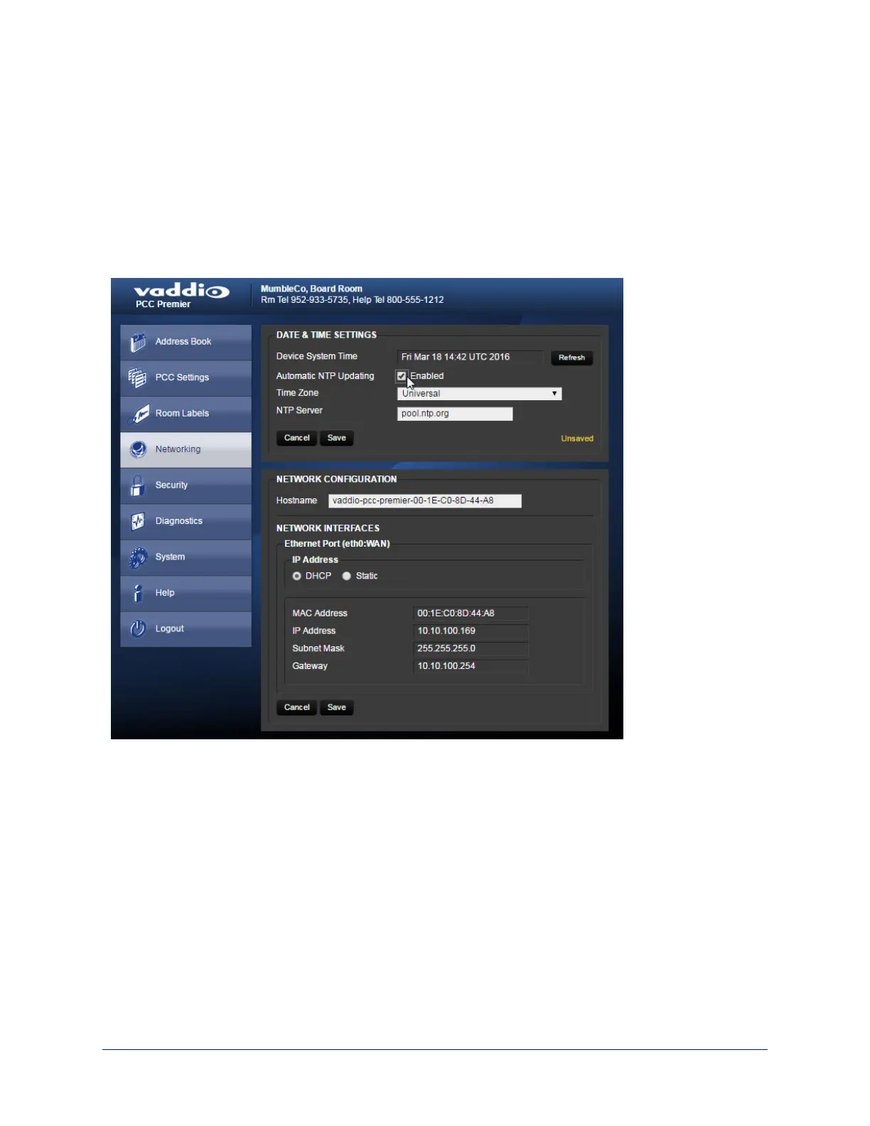 After you save changes, it may take a few seconds for the system time display to update. Click the