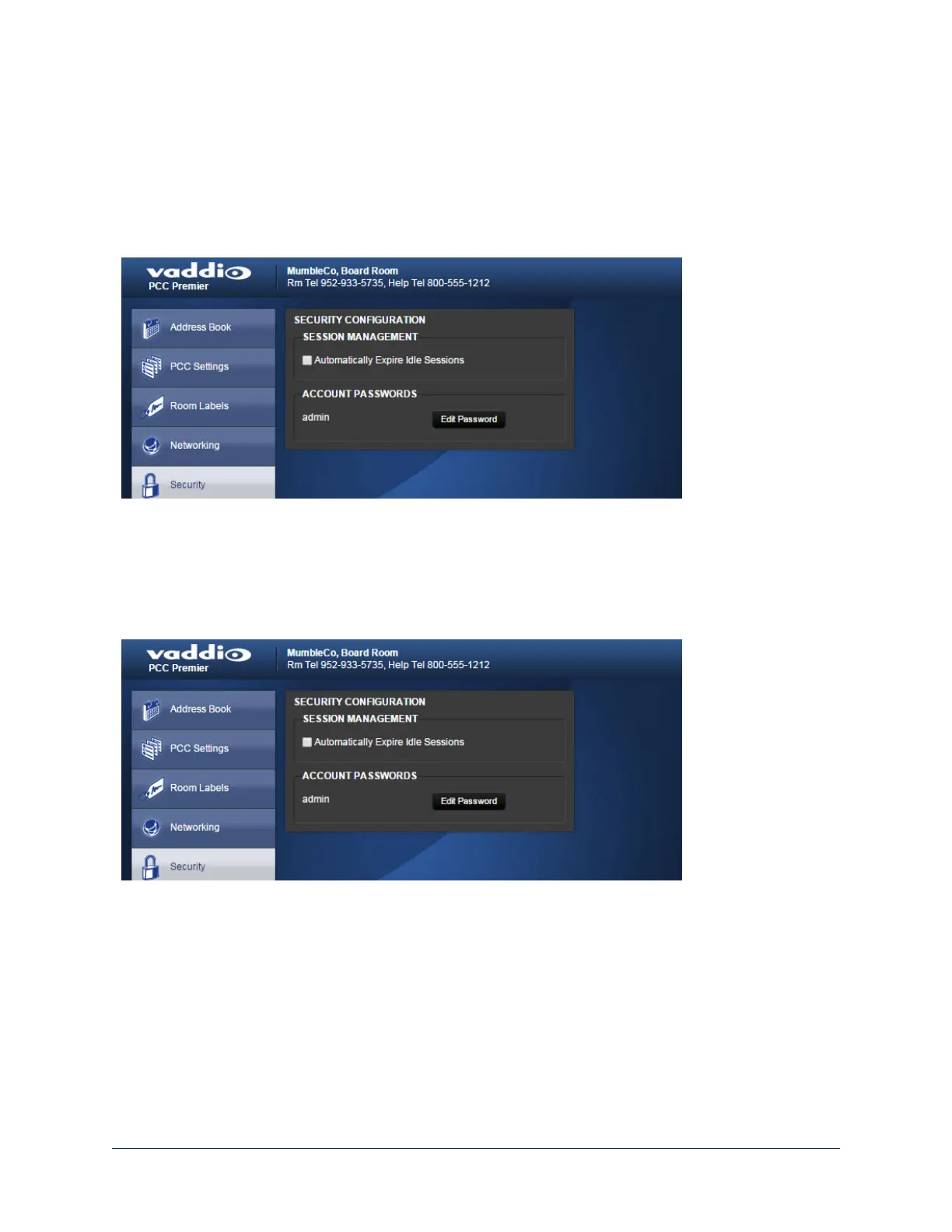 Web interface, Security page