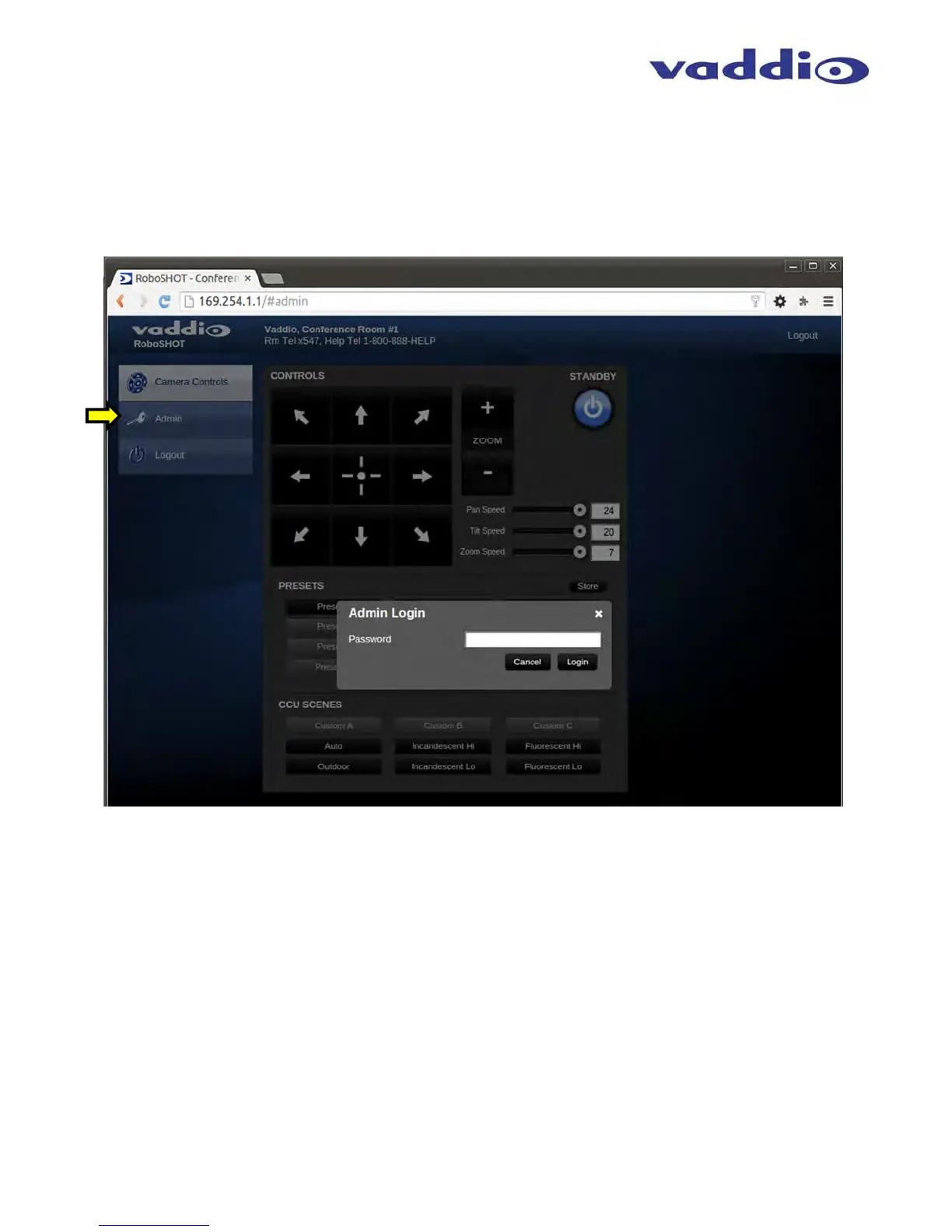 automatic guest access to the main camera control page. If guest access is turned on by the Admin, then system
