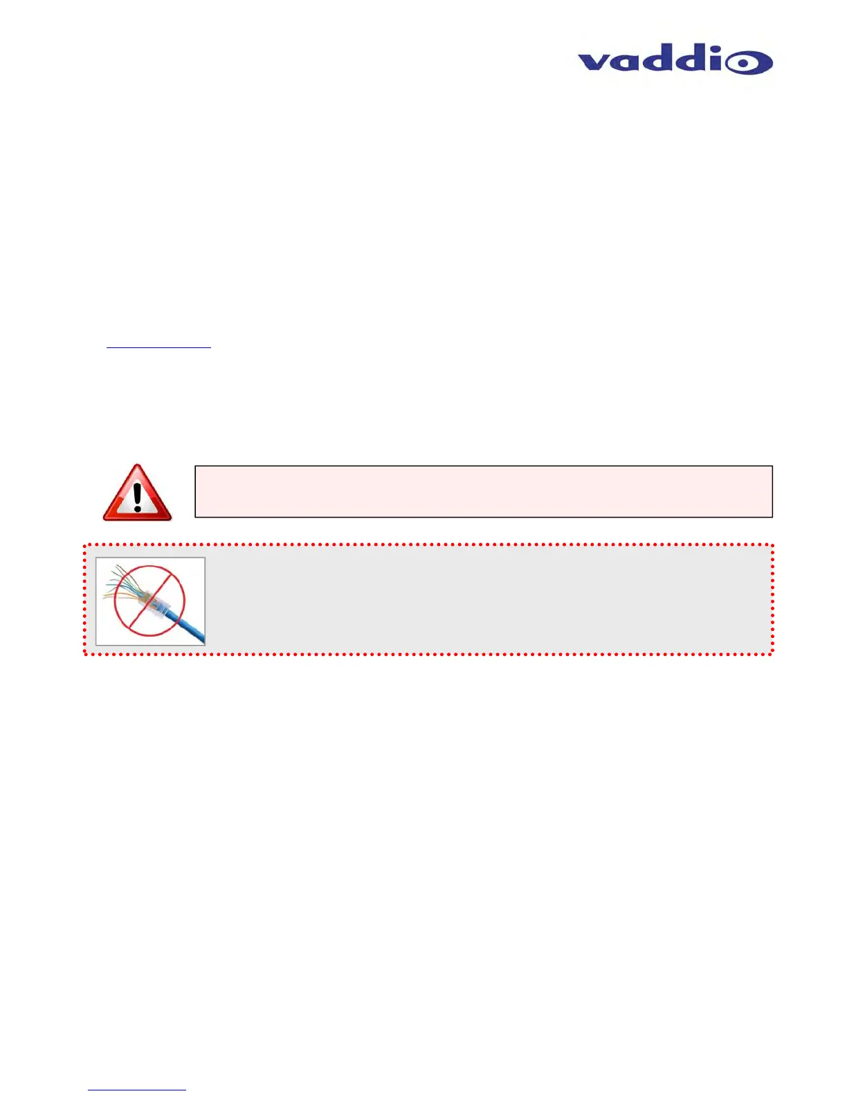 pin-outs prior to use and connection to Vaddio Cat-5e products.