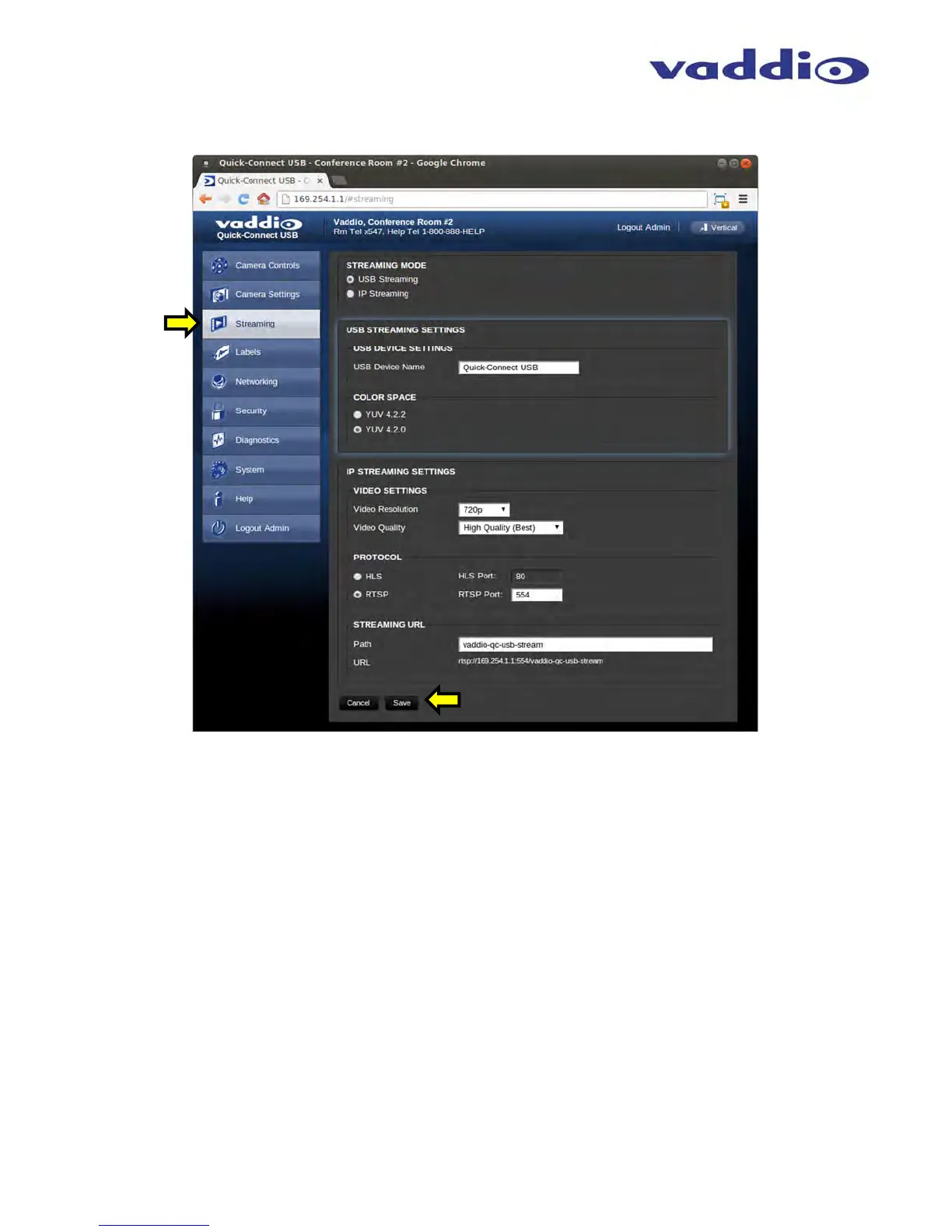 When finished setting up the streaming parameters click Save to put the changes into effect or cancel, which will not save