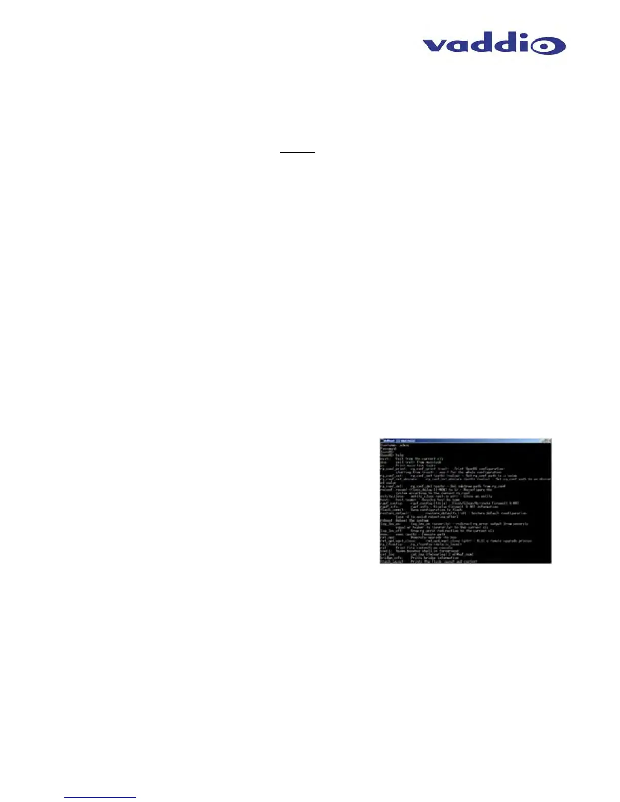 The Vaddio Serial Command protocol is a high level text based command line interface supported via telnet session