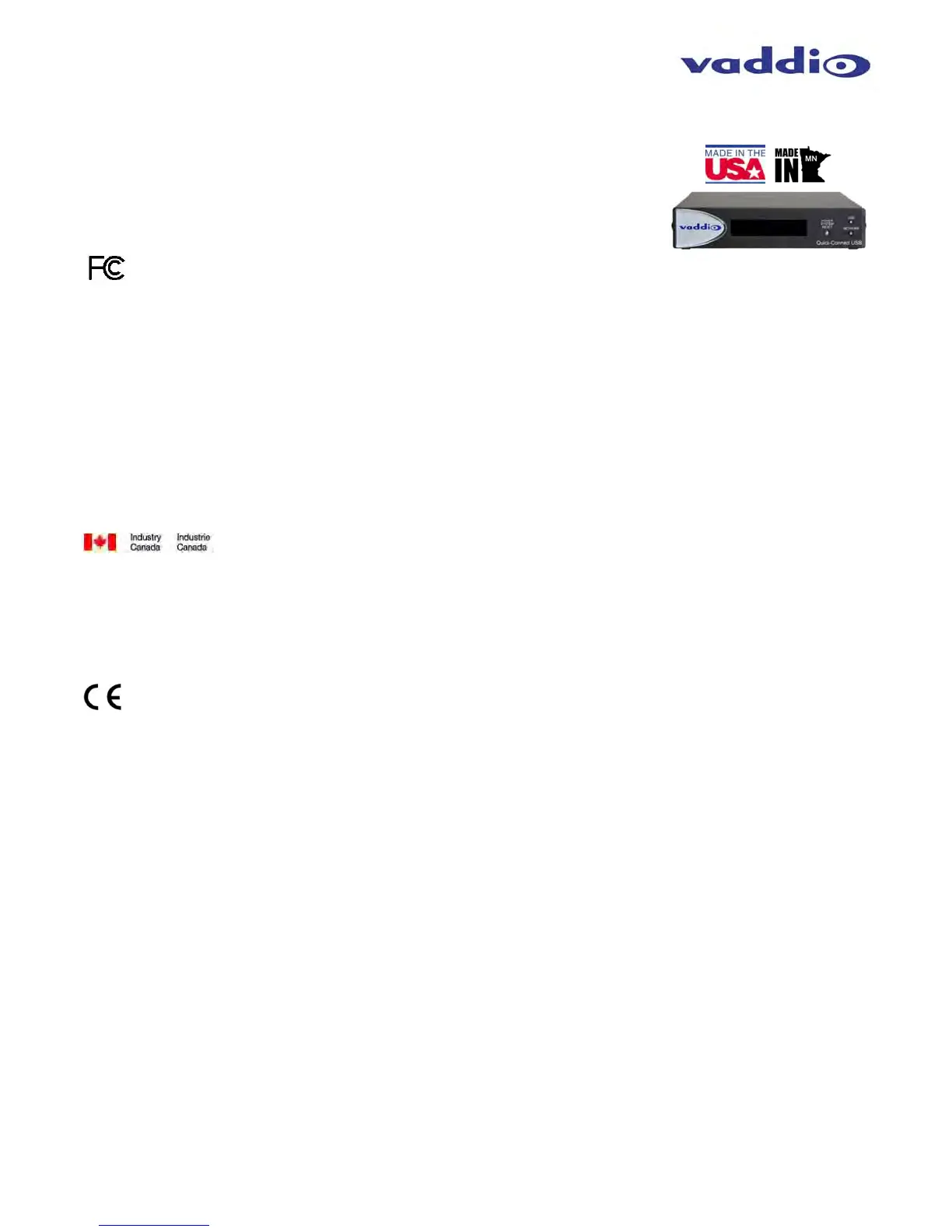Changes or modifications not expressly approved by Vaddio can affect emission compliance and could void the