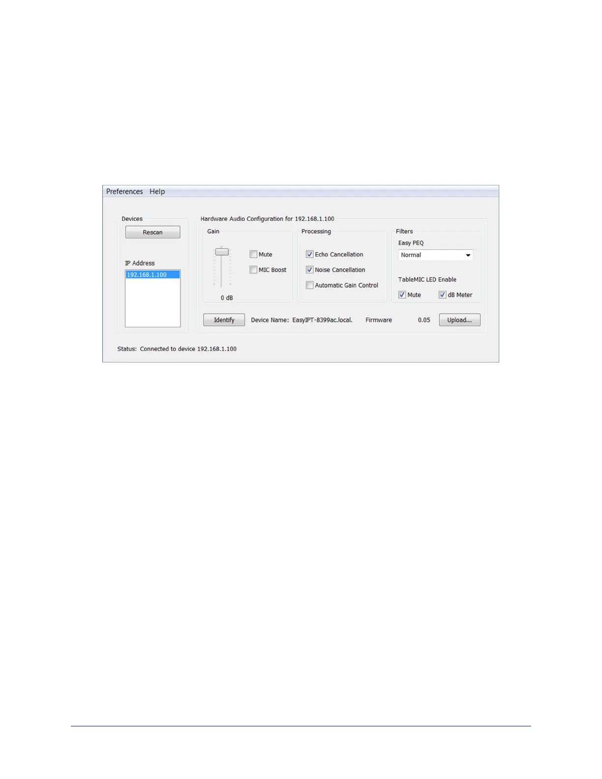 Interface Application) shows the audio pickup level. These can be disabled in the TableMIC LED Enable