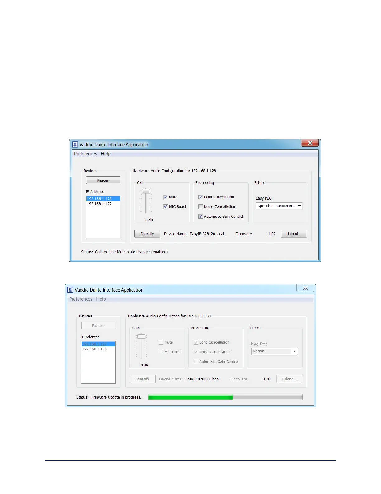 You will need the Vaddio Dante Interface Application to update EasyIP microphone firmware.