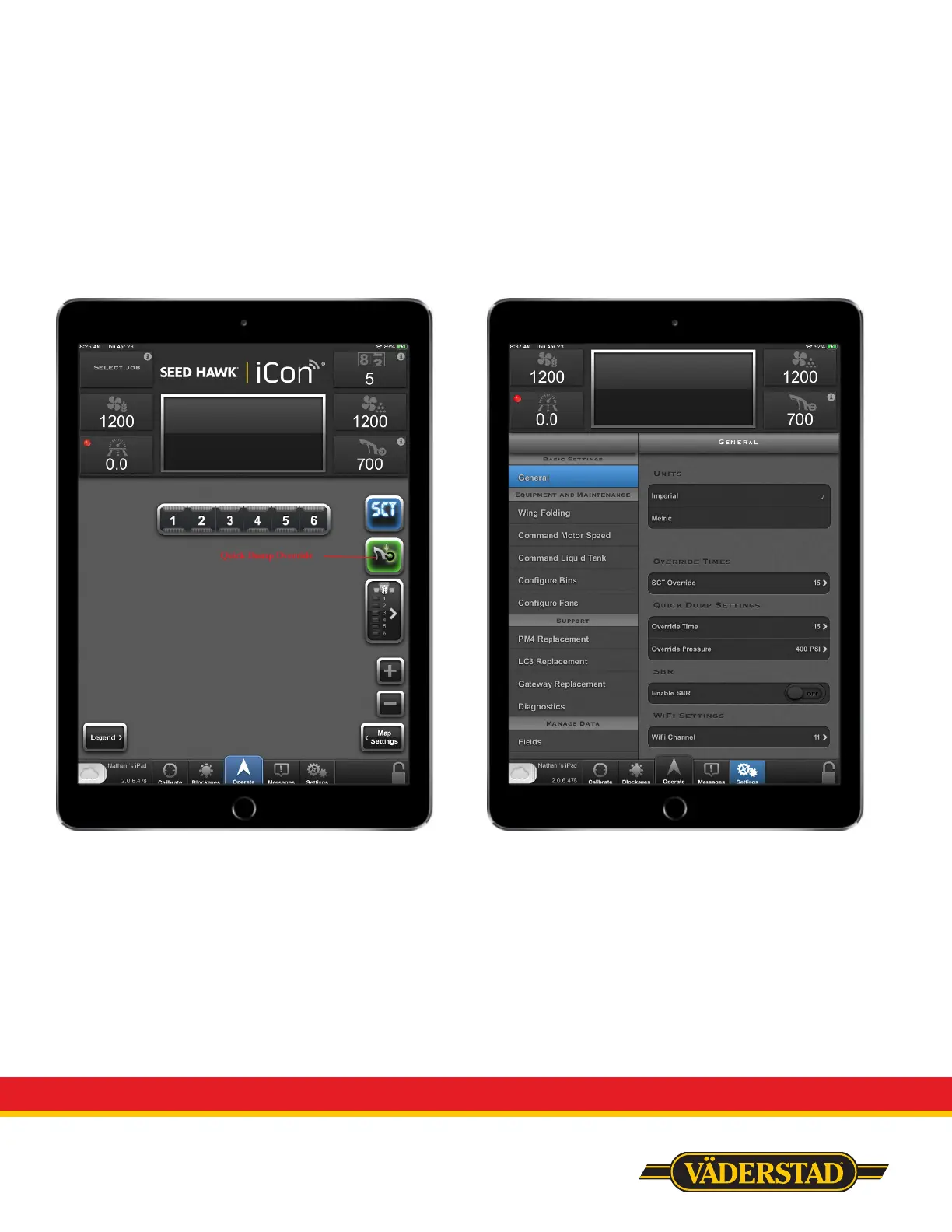 • The quick dump override feature is utilized for when you encounter wet areas in the field that require less