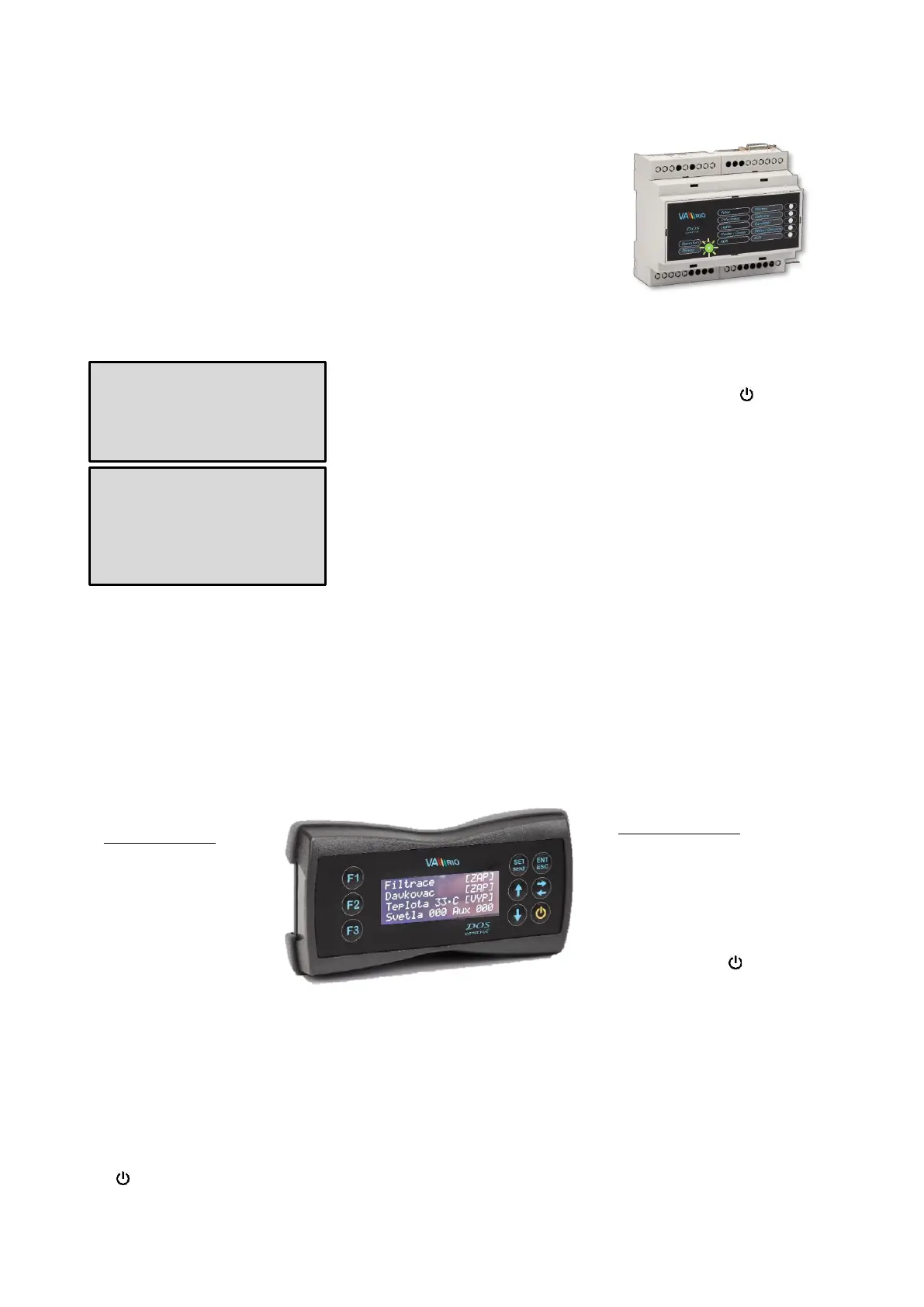 F1 - defaultně Světla (ZAP / časovač 15-240 min / 000 = VYP)