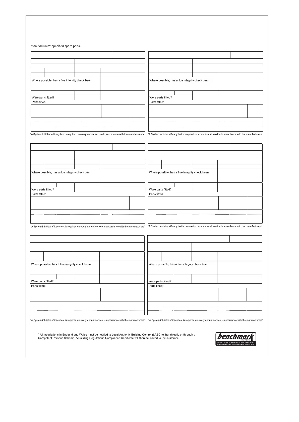When completing a service record (as below), please ensure you have carried out the service as described in the manufacturers’ instructions. Always use the