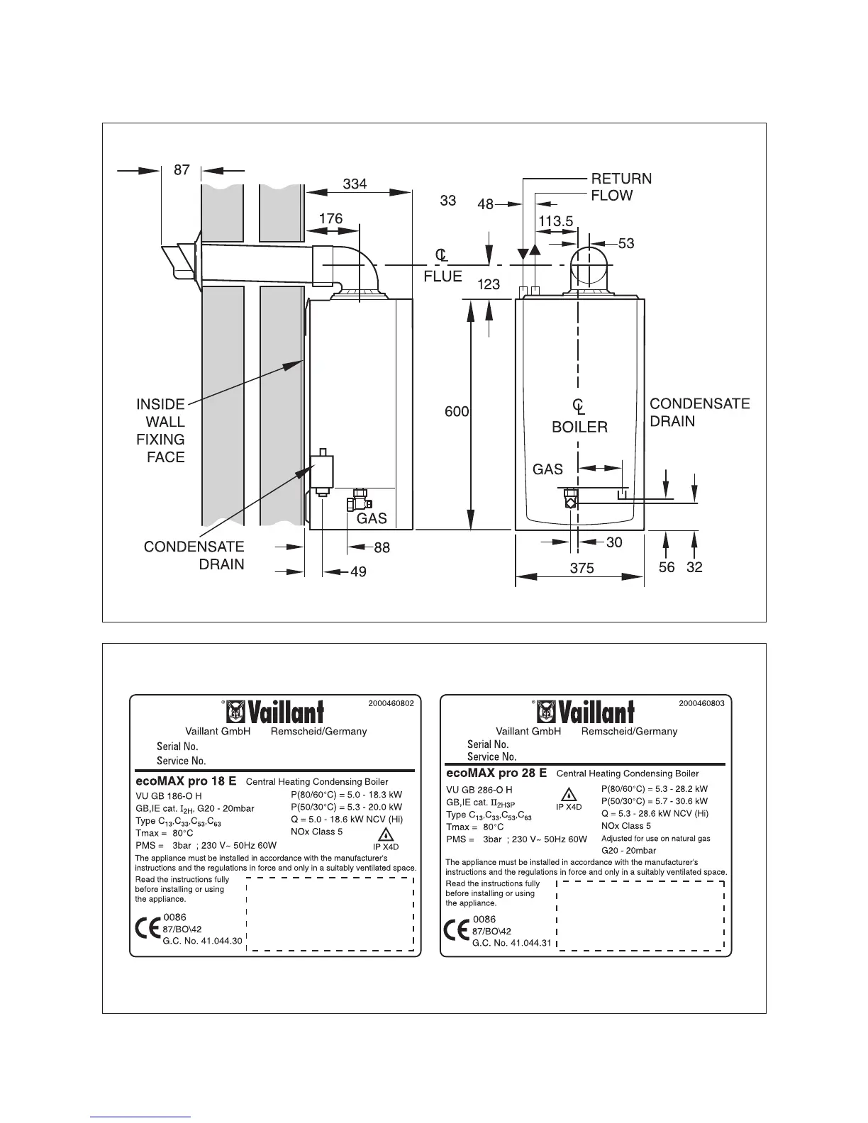 Vaillant ecoMAX pro - Dimensions and Data Labels
