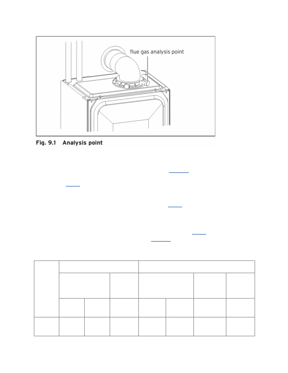 ● Check CO2 value (for case off) as stated in table 9.1 for the boiler installed.