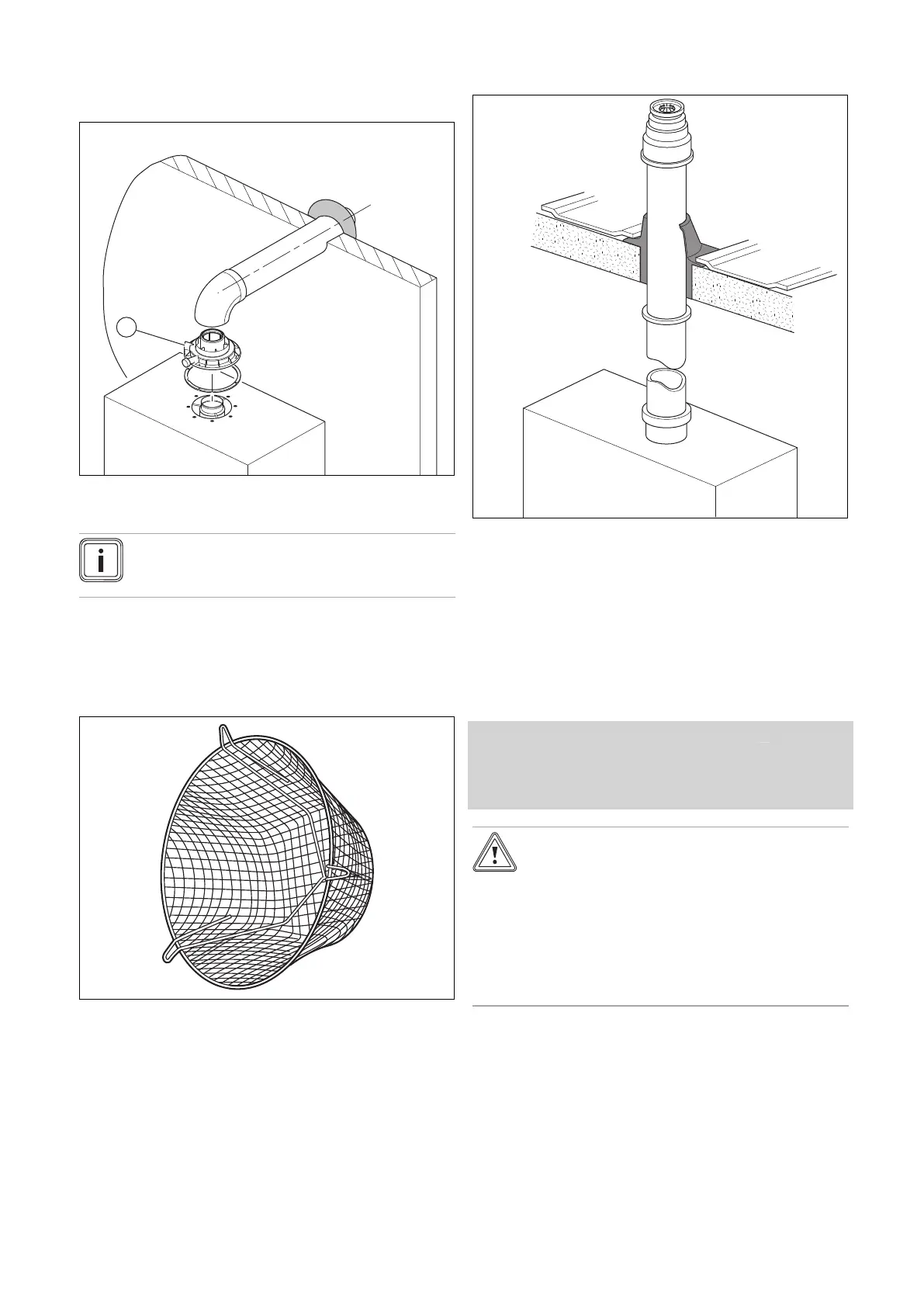 Vaillant ecoTEC plus 840 - 7.2.4 Flue Configuration Description; 7.2.4.1 Horizontal Concentric Flue ⌀ 60;100 mm or ⌀ 80;125 mm (C13 type installation); 7.2.4.2 Terminal protection; 7.2.4.3 Vertical Concentric Flue ⌀ 60;100 mm or ⌀ 80;125 mm (C33 type installation)