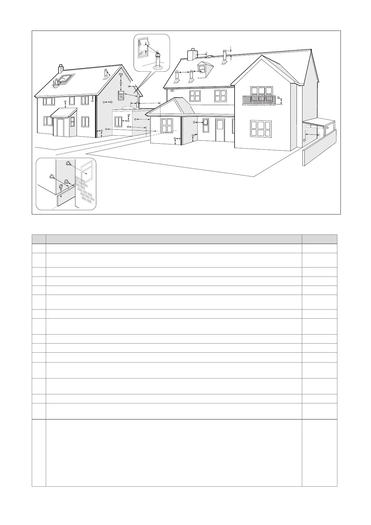 – Dimensions from a flue terminal to a fanned air inlet to be determined by the ventilation equipment.
