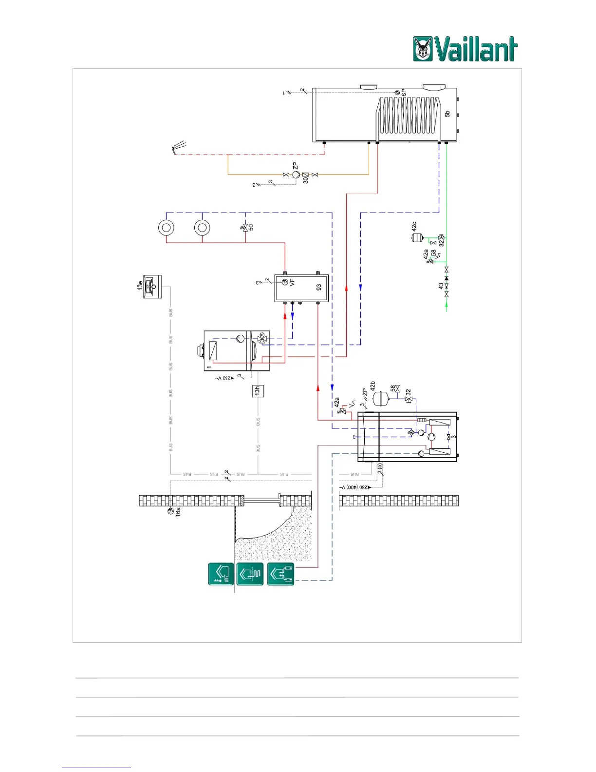 This system diagram does not contain all of the cut-off and safety devices required for correct installation. Comply with the