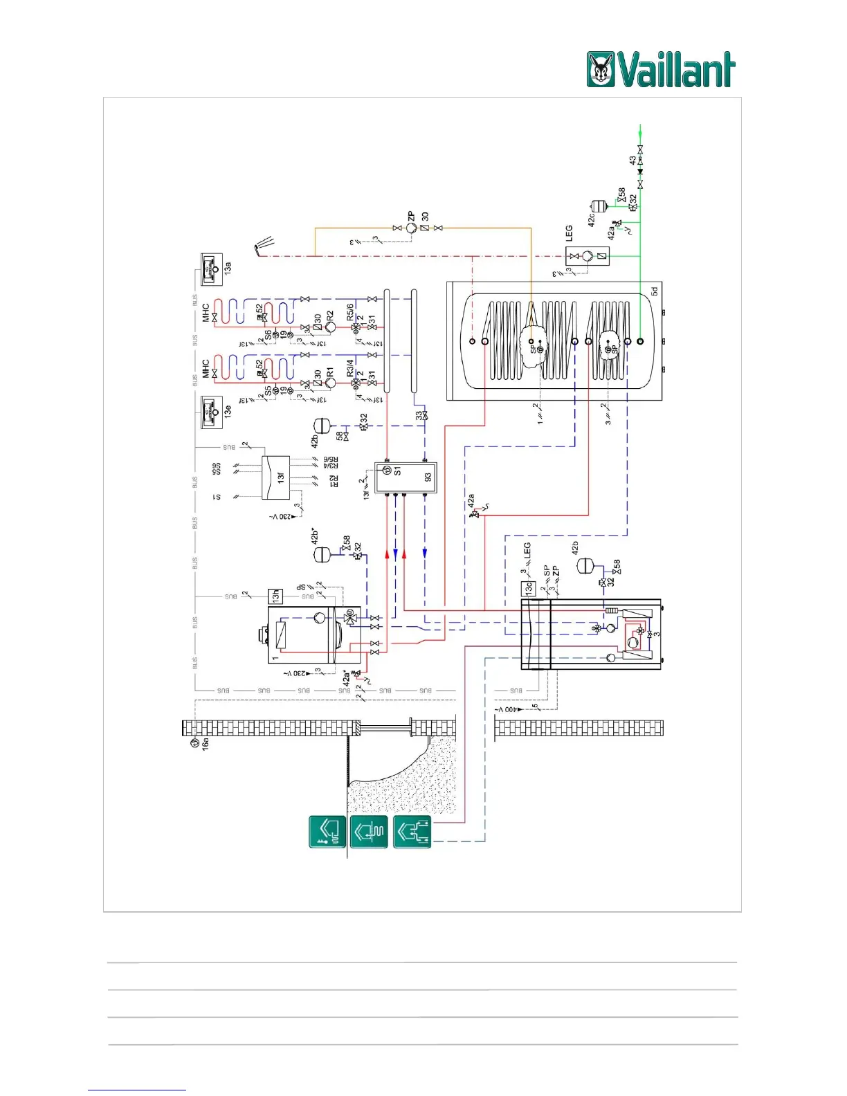 This system diagram does not contain all of the cut-off and safety devices required for correct installation. Comply with the