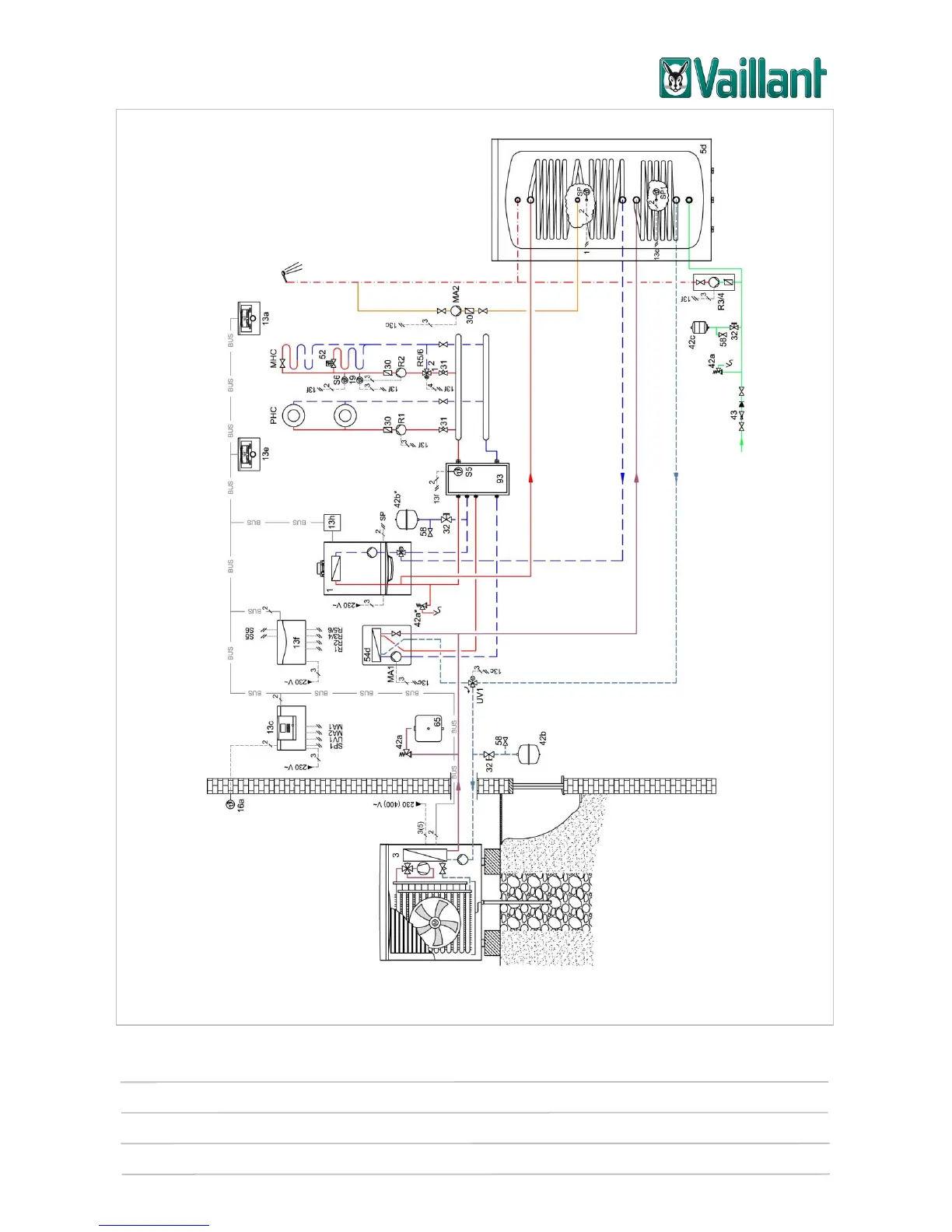 This system diagram does not contain all of the cut-off and safety devices required for correct installation. Comply with the