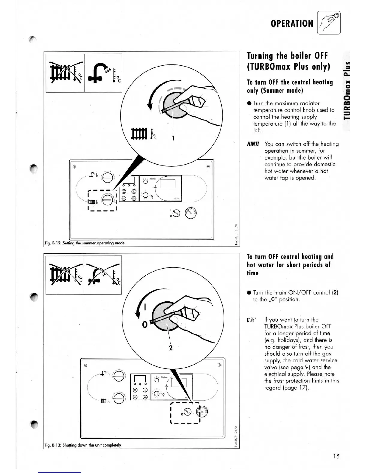Vaillant Thermocompact 624 e - Turning Boiler OFF (TURBOmax Plus)